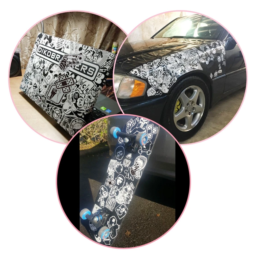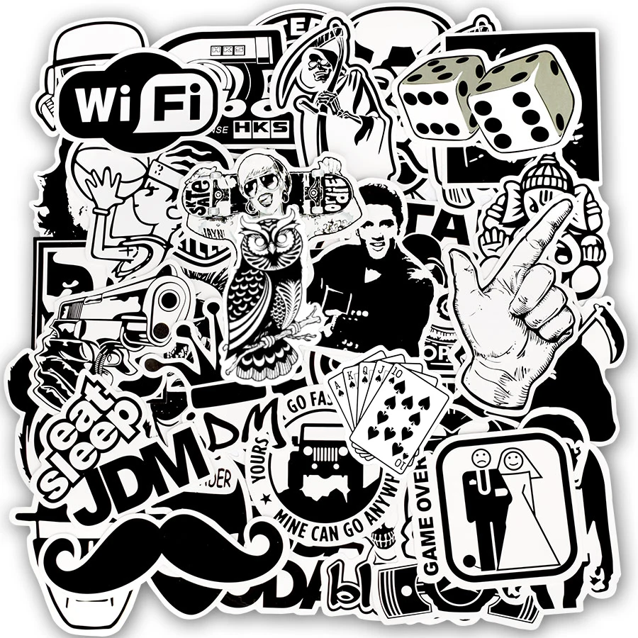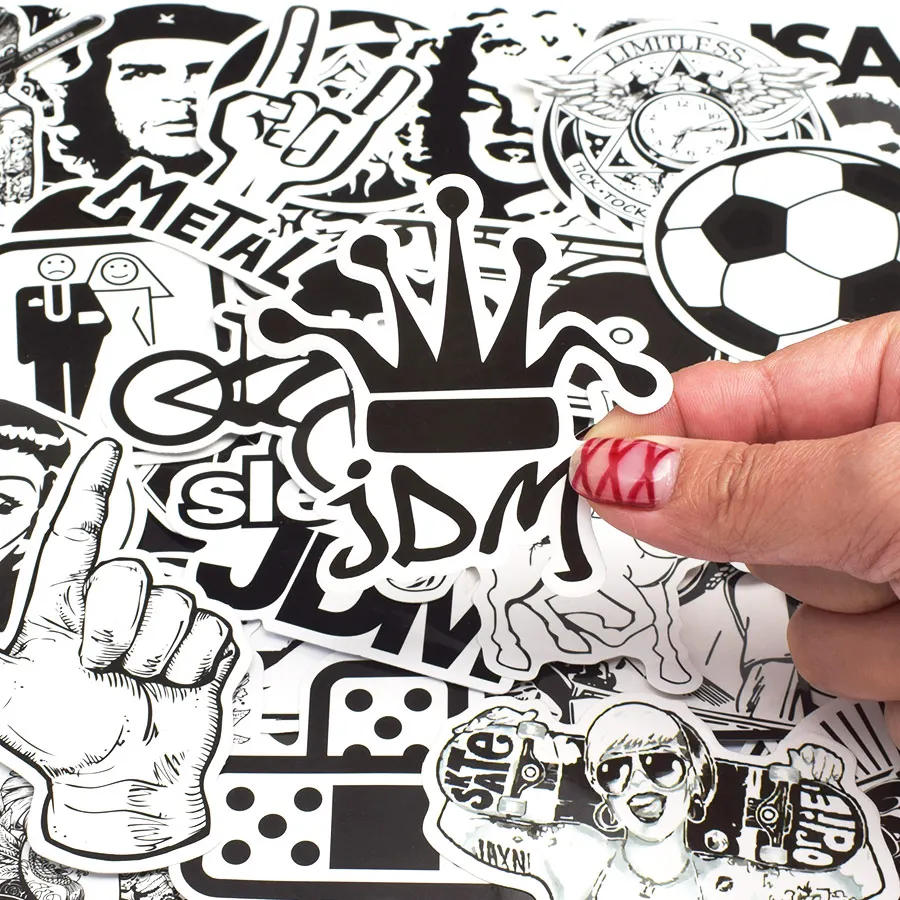 100pcs Black and White Random Sticker Punk Graffiti Rock Funny Stickers for Kid DIY Guitar Helmet Laptop Suitcase Bike Stickers